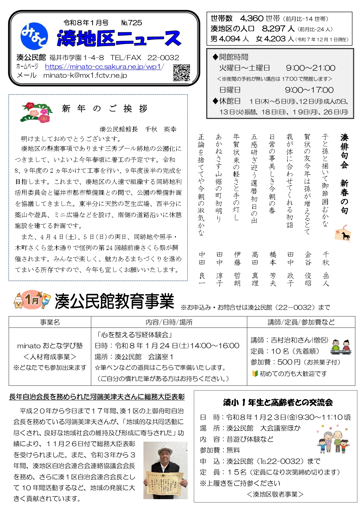 湊地区ニュース令和8年1月号(No.725)を発行しました